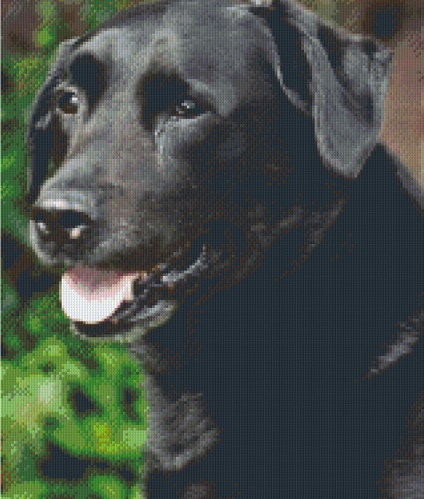 Wij hebben hier als voorbeeld een foto van onze hond Amber, een labrador, gemaakt met Pixelhobby.