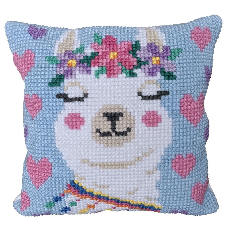 Borduurpakket Kussen Voorbedrukt Lama 40 x 40 cm