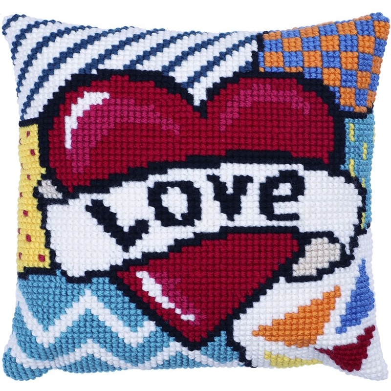 Borduurpakket Kussen Voorbedrukt Patchwork Love 40 x 40 cm