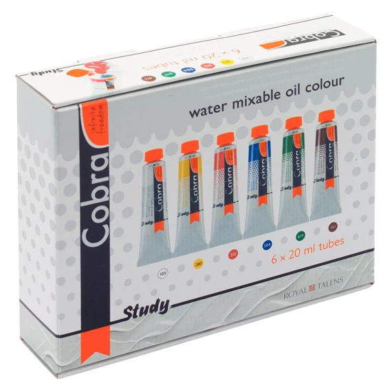 Deze handige set bevat zes kleuren van Cobra Study olieverf in tubes van 20 ml.