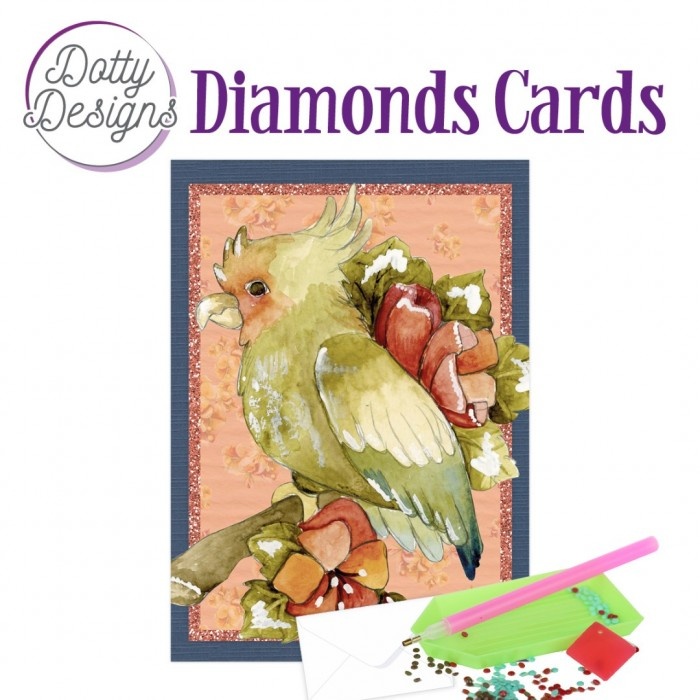In deze Diamonds Cards sets van Dotty Designs vind je alle materialen voor één kaart met daarop een deel Diamond Painting.