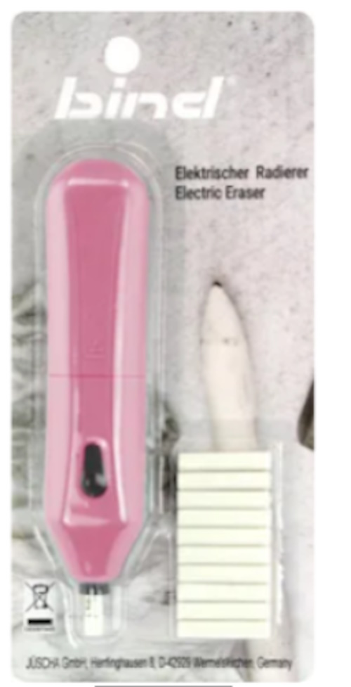 De elektrische gum is gemaakt van ABS kunststof en word geleverd inclusief 10 navullingen. Exclusief 2xAAA batterijen