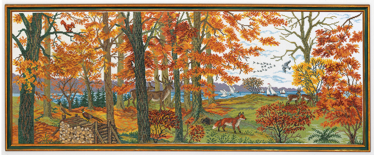Kruissteek borduurpakket herfstlandschap in het bos