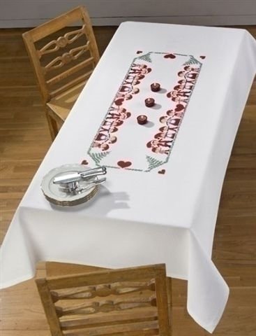 Handwerkpakket Kerst tafellaken met elfjes, compleet telpakket op aida borduurstof