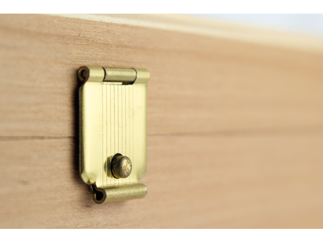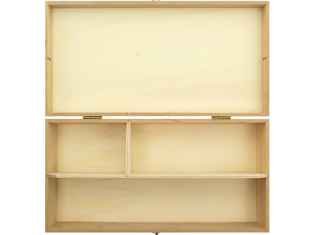 Tekendoos van ongelakt hout met een 3-vaks indeling. Formaat 24x12,5x6cm.