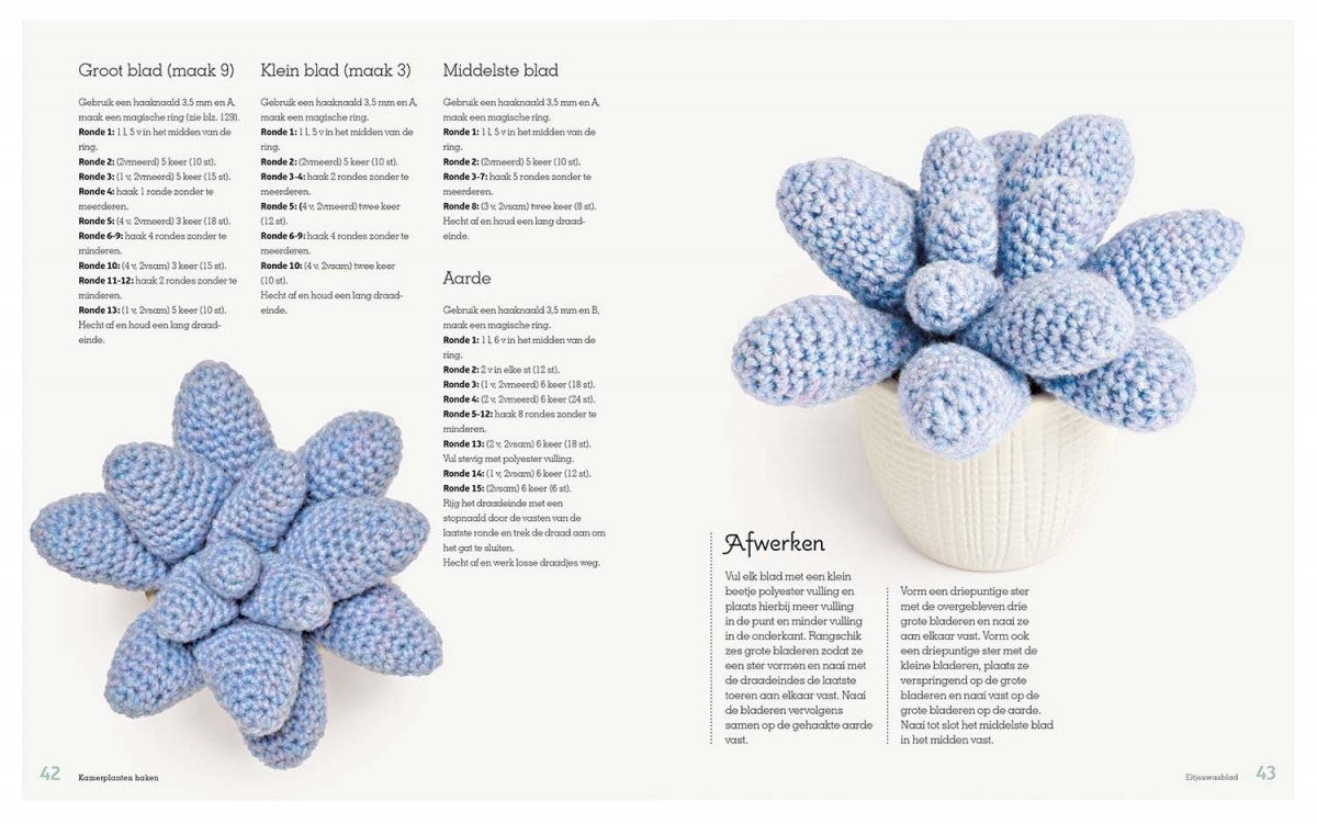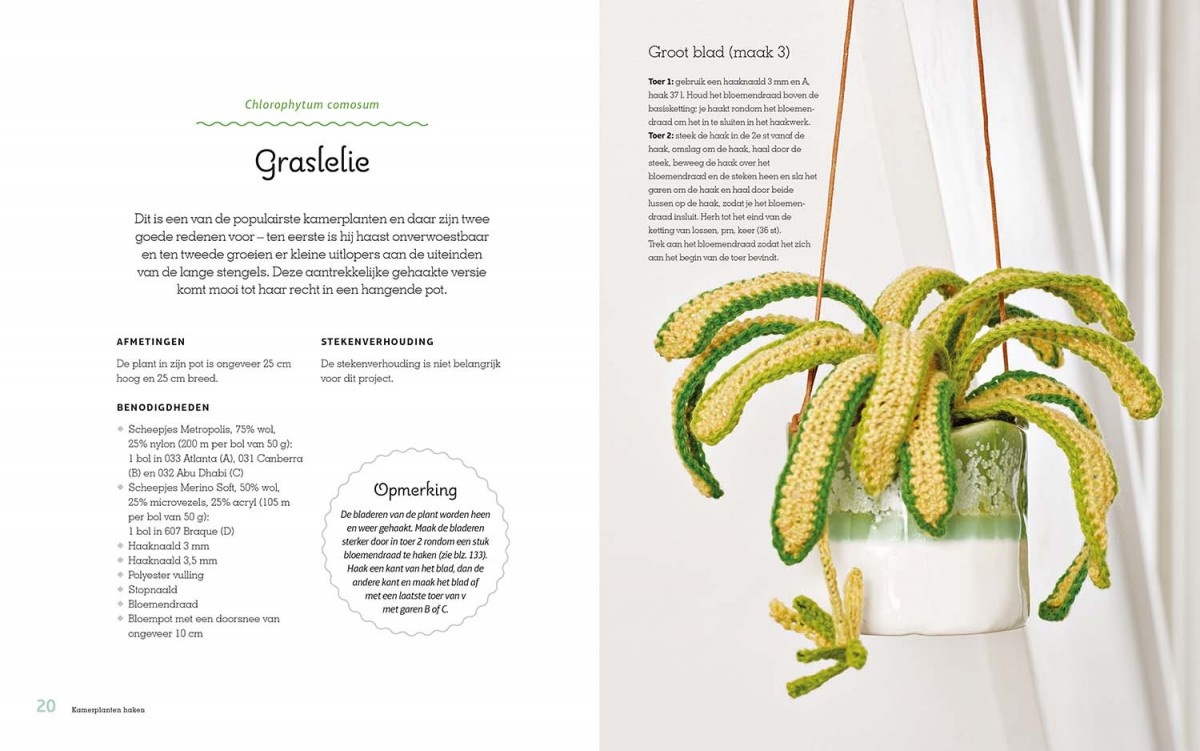 Blader door de etalage vol planten, kies je favorieten en ga aan de slag. Alles wat je moet weten staat in het boek – van gereedschappen en materialen tot uitleg over de basishaaksteken. Je leert ook hoe je je zelfgehaakte creaties kunt voorzien van mooie potten om ze te laten stralen.