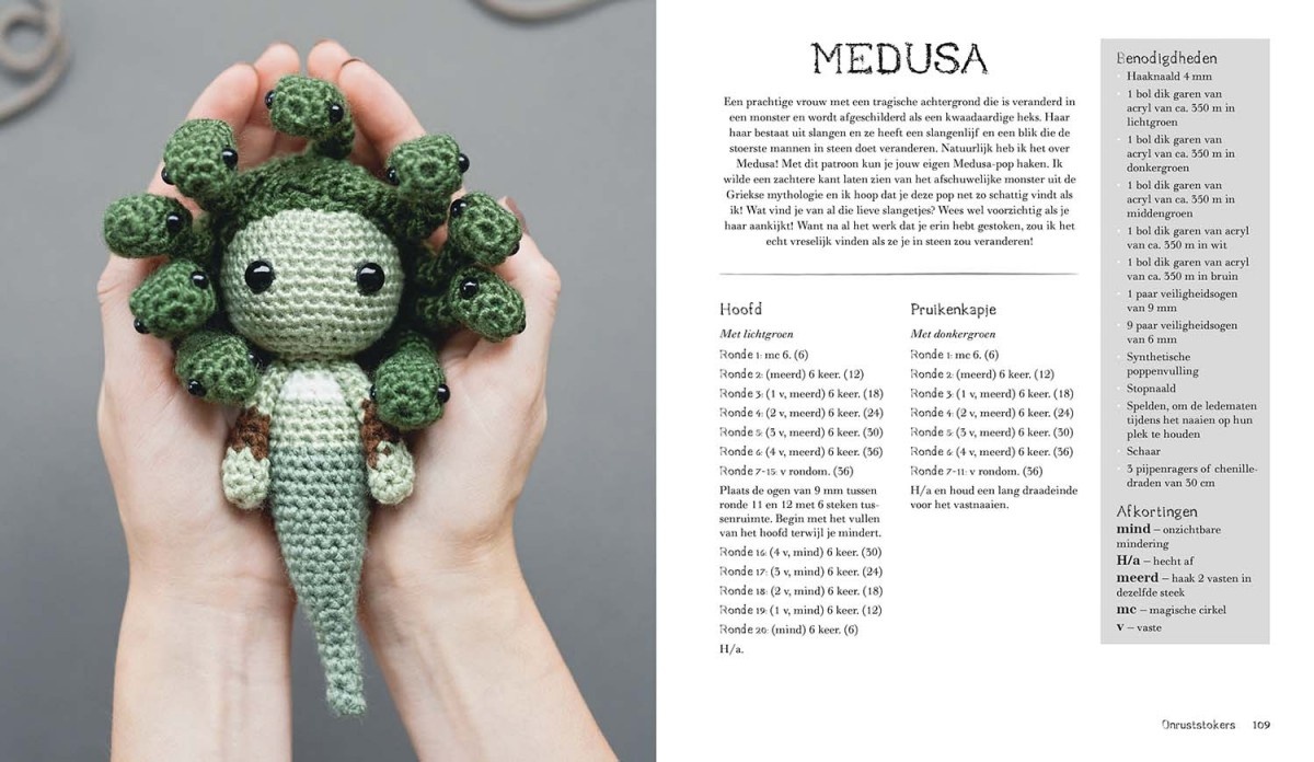 Deze 40 unieke patronen tonen de eigenaardigheden van elk wezen, zoals de grootsheid van drakenvleugels, de slangen van Medusa en de gruwelijke tentakels van Slenderman. Je krijgt tips om zelf gekleurde ogen te maken en om de maat en kleuren van patronen aan te passen. Of je nu je eigen knuffelcollectie wilt uitbreiden met een paar griezels of een horrorfan wilt verrassen, er is voor elk wat wils.
