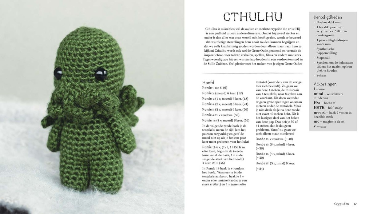 Wie zegt dat griezelig niet schattig kan zijn? Met deze indrukwekkende collectie amigurumi ontdek je een compleet nieuwe wereld vol bijzondere wezens en cryptiden in hun volle angstaanjagende glorie. Van klassieke cryptiden als Cthulhu, Nessie en de Motman tot ijzingwekkende wezens als zombies, weerwolven en Nosferatu zelf – de verschrikkingen die je zelf kunt haken zijn eindeloos.