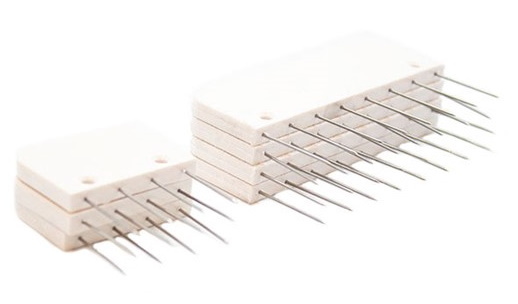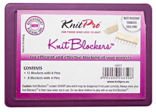 De KnitPro Knitblockers maken het veel gemakkelijker om gebreide of gehaakte werken te spannen. De handige handvatten bevatten 4 of 8 individuele naalden die in één beweging geplaatst kunnen worden. Hierdoor gaat het spannen een stuk sneller en worden de randen tegelijkertijd gelijkmatig vastgezet. Het spannen van het handwerk gebeurt dus veel sneller én de naalden worden gelijkmatig verdeeld.