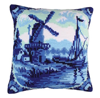 kruissteek kussen borduurpakket op voorgedrukt canvas.