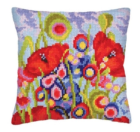 Kussen borduurpakket Red Poppies 5234