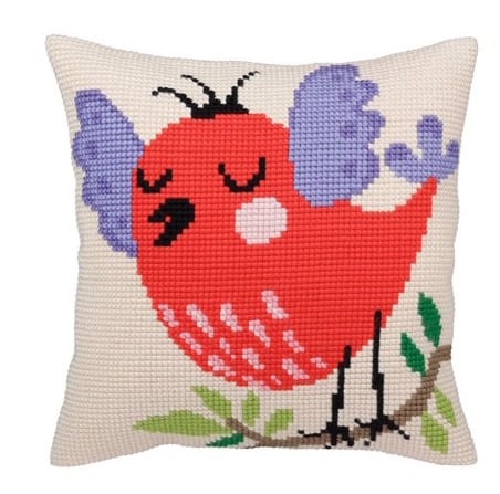 kruissteek kussen borduurpakket op voorgedrukt canvas.