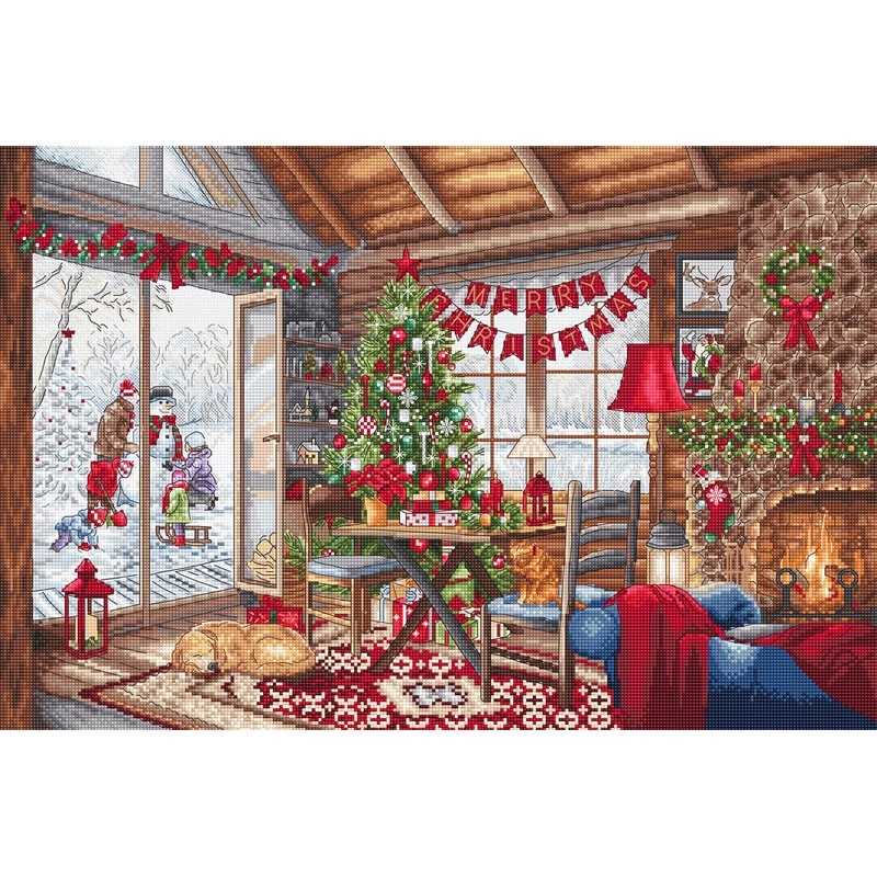 Leti Stitch borduurpakket Christmas Cabin 43 x 29 cm