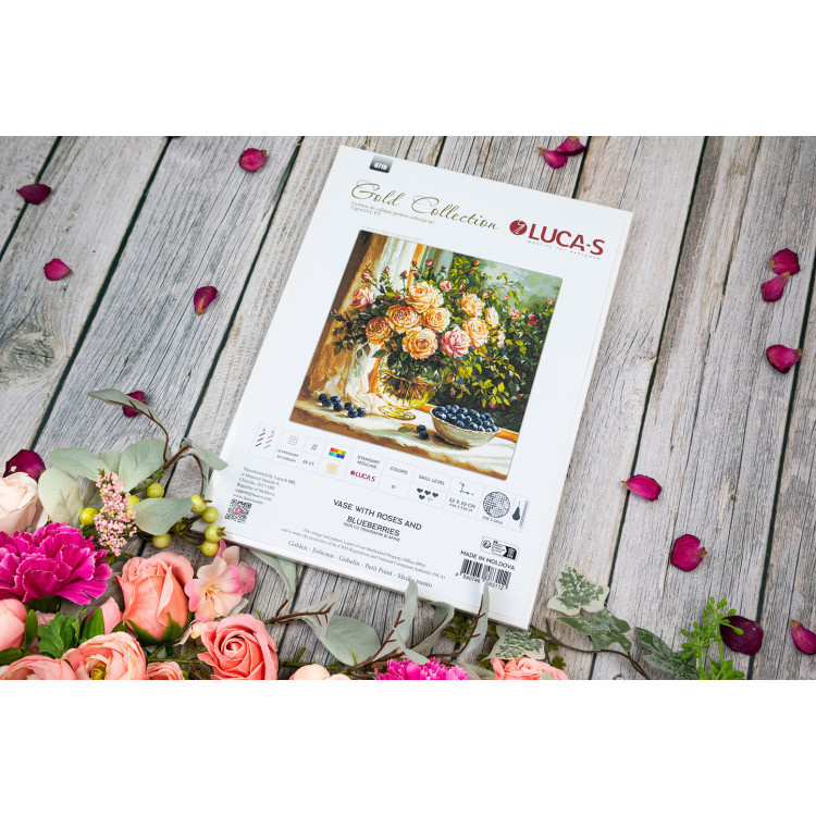 Luca S Borduurpakket Vase with Roses and Blueberries