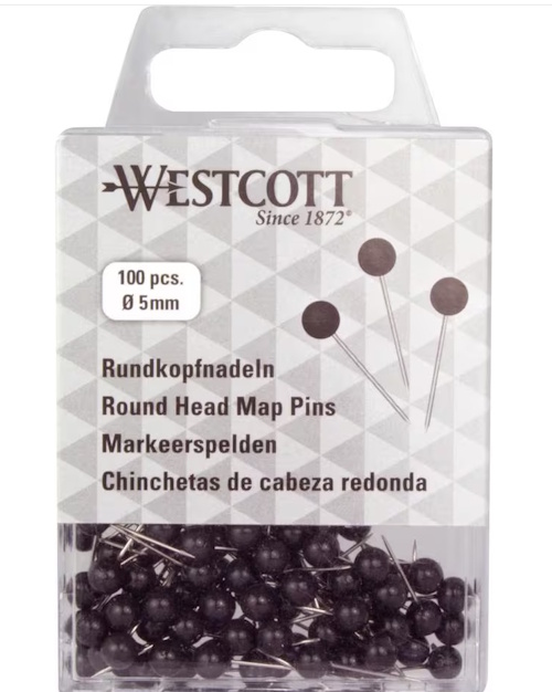 Zwart markeerspelden, uitermate geschikt voor gebruik op textielborden en bulletinboards.
