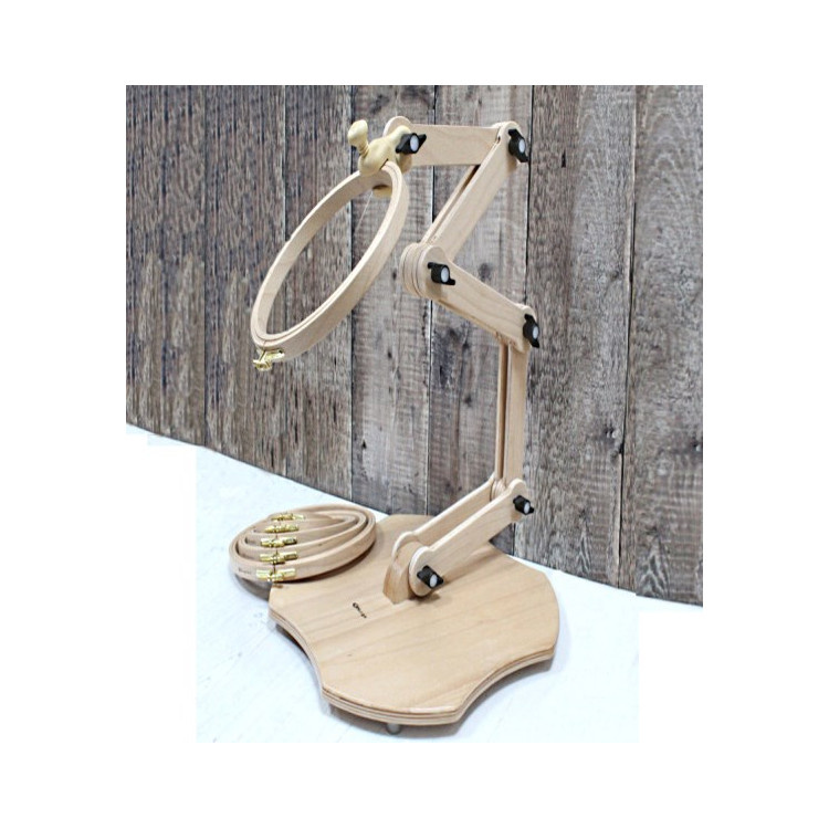 De verstelbare houten borduurstandaard van Nurge is gemaakt van hard beukenhout.