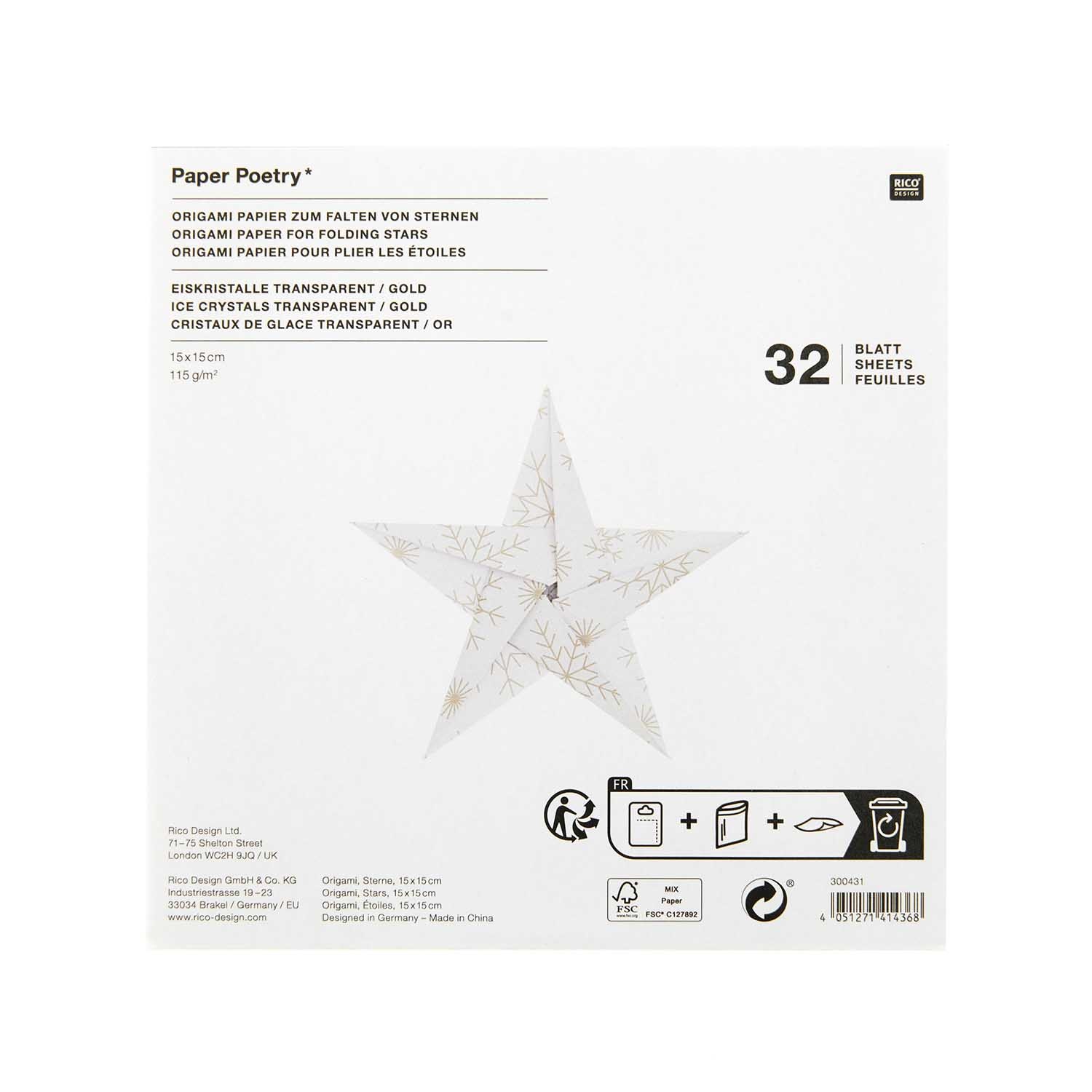 Origami 15x15 cm transparant ijskristallen goud 32 vel