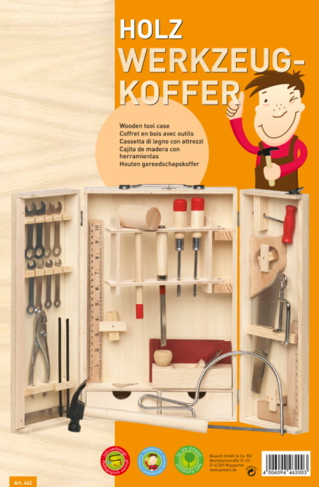 Uitgebreide set met timmergereedschap in houten kist voor de beginners
