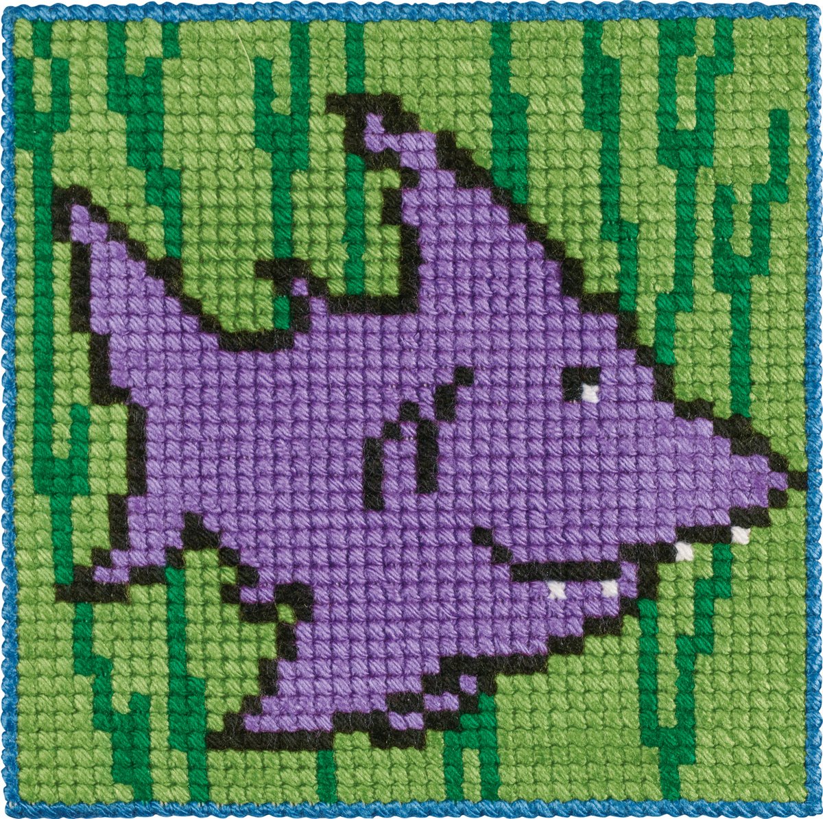 Klein borduurpakketje voor kinderen met grove kruissteek op grove sudan met dik acrylgaren