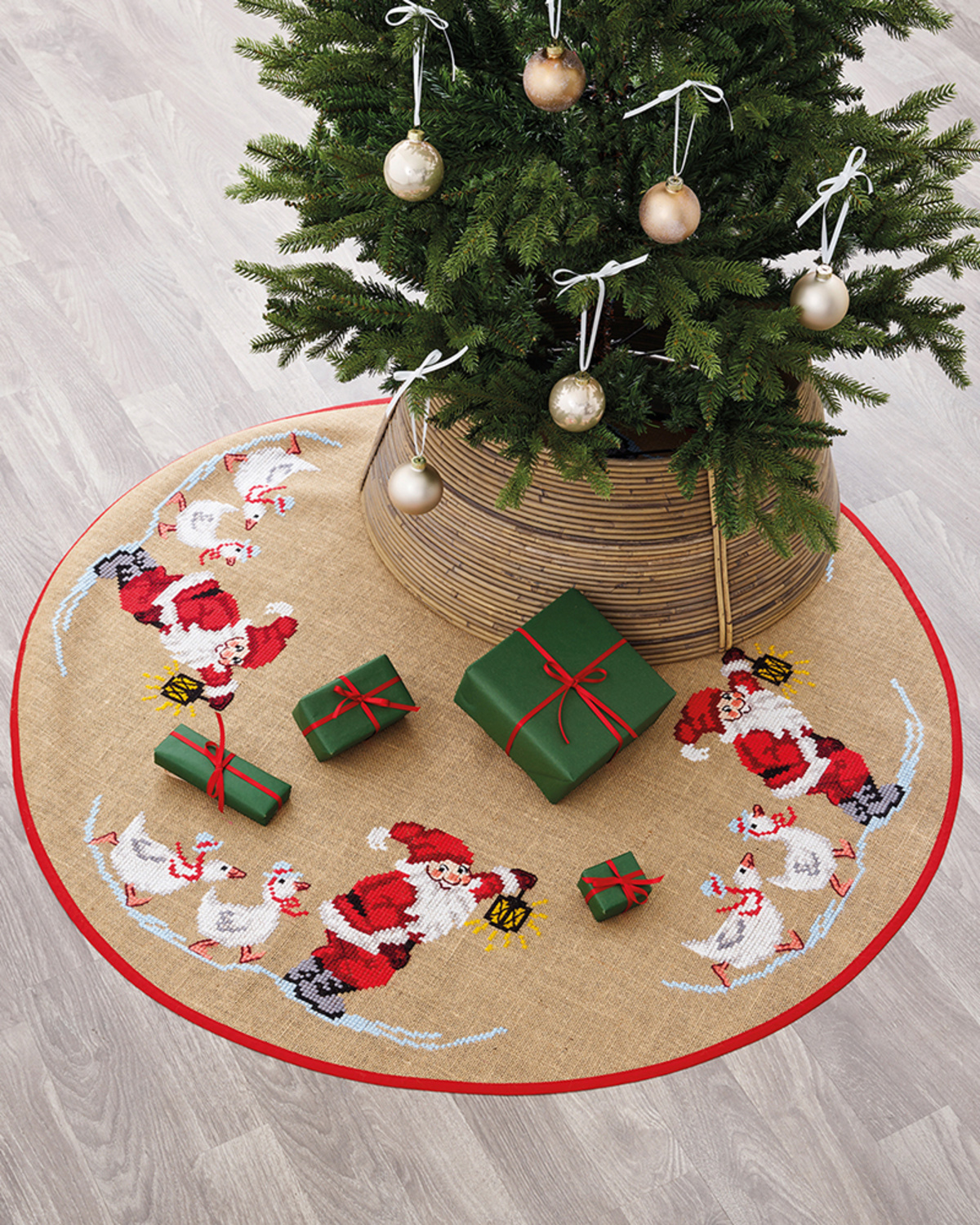 Borduurpakket voor het borduren van een rond kerstkleed voor onder de kerstboom. Met genoeg ruimte voor de cadeautjes!