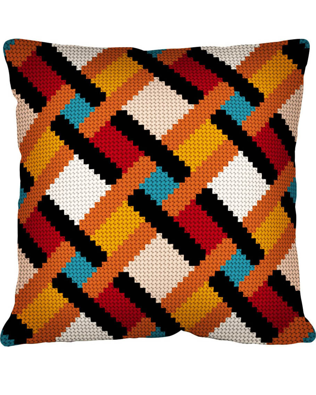 Borduurkussen met grove halve kruissteken op voorbedrukt stramien