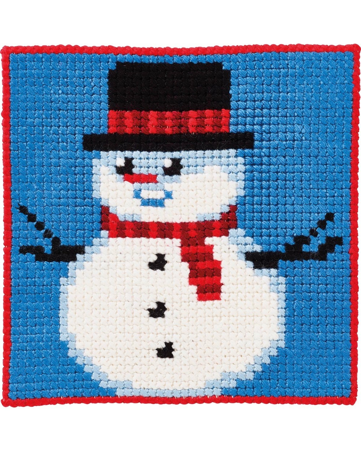 Klein borduurpakketje voor kinderen met grove kruissteek op grove sudan met dik acrylgaren