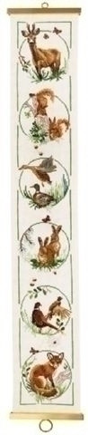 Schellekoord borduurpakket met verschillende dieren: hert, fazanten, eekhoorns, vos, konijnen en eenden.
