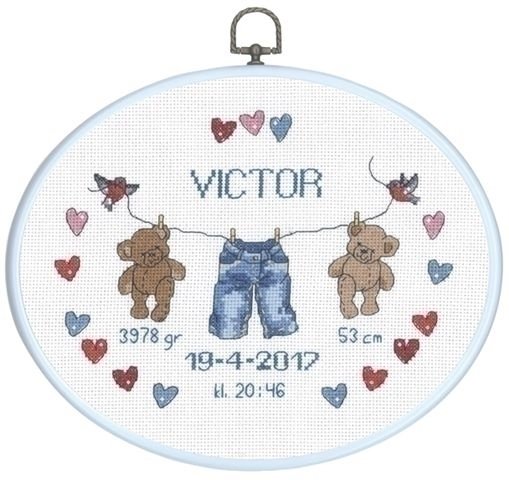 Borduurpakket geboortetegel voor een jongetje; ca. 26 x 20 cm Lees meer