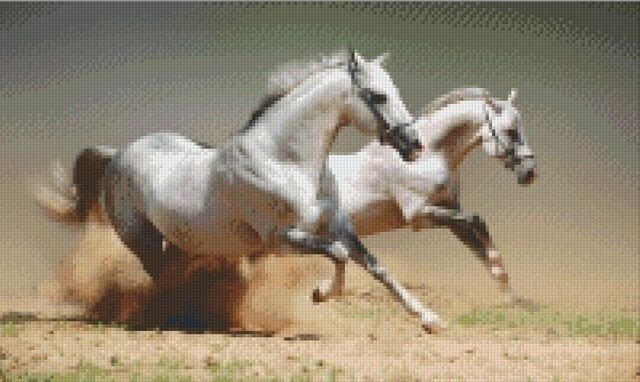 Pixelhobby patroon voor het maken van een Pixelhobby schilderij van twee rennende witte paarden