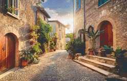 Pixelhobby patroon een oud straatje in een Italiaans dorp