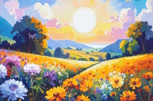 Pixelhobby Patroon 5854 Ondergaande Zon in een Bloemenveld