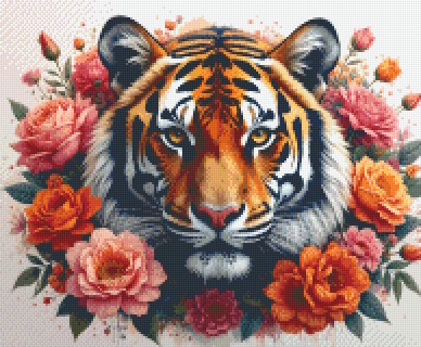 Pixelhobby Patroon 5871 Tijger tussen de Bloemen 16 basisplaten