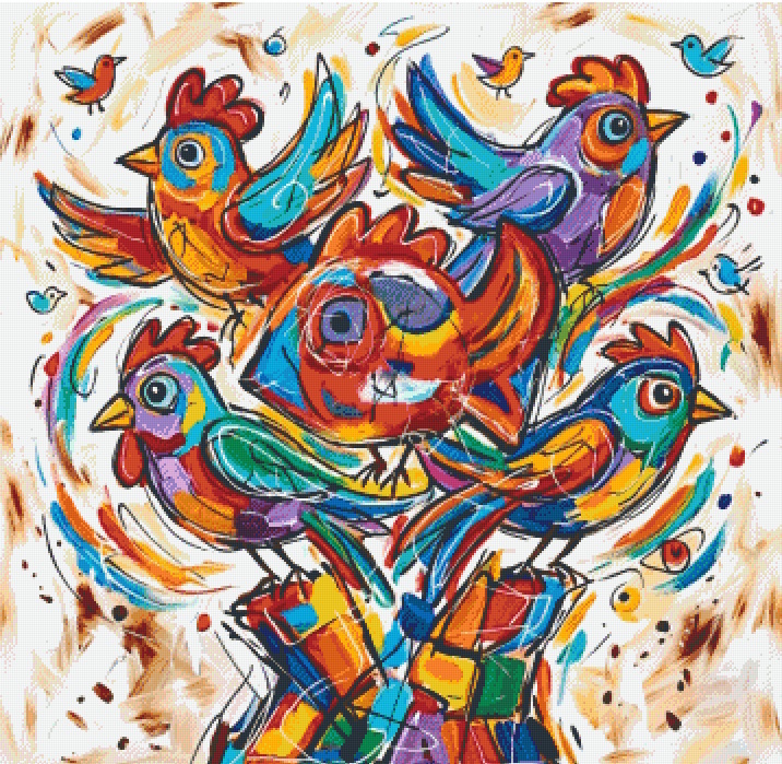 Pixelhobby patroon in Cobra stijl van vogels in vrolijke felle kleuren
