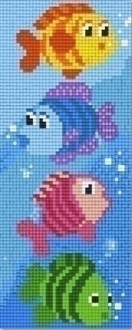 Dit Pixelhobby schilderijtje met kleurige vissen wordt gemaakt met 2 basisplaten