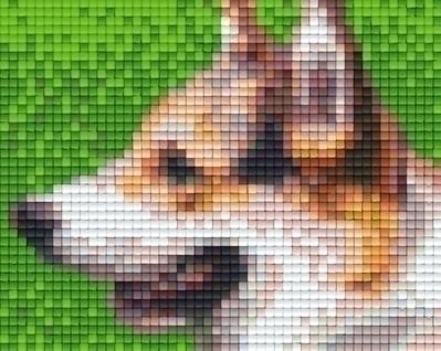 Geprint patroon met de 1 basisplaat 40 pixelmatjes in 35 verschillende kleuren.