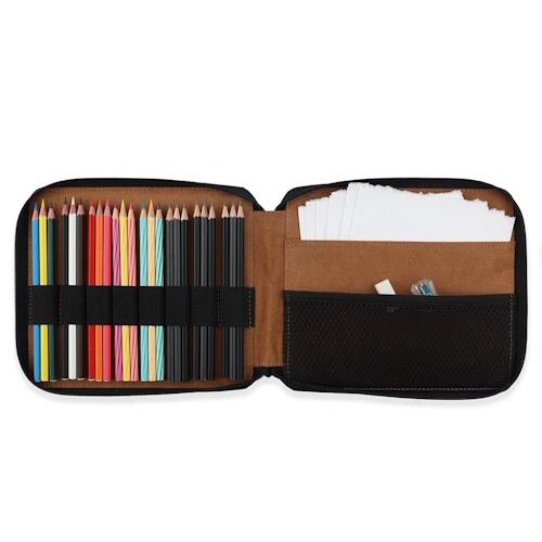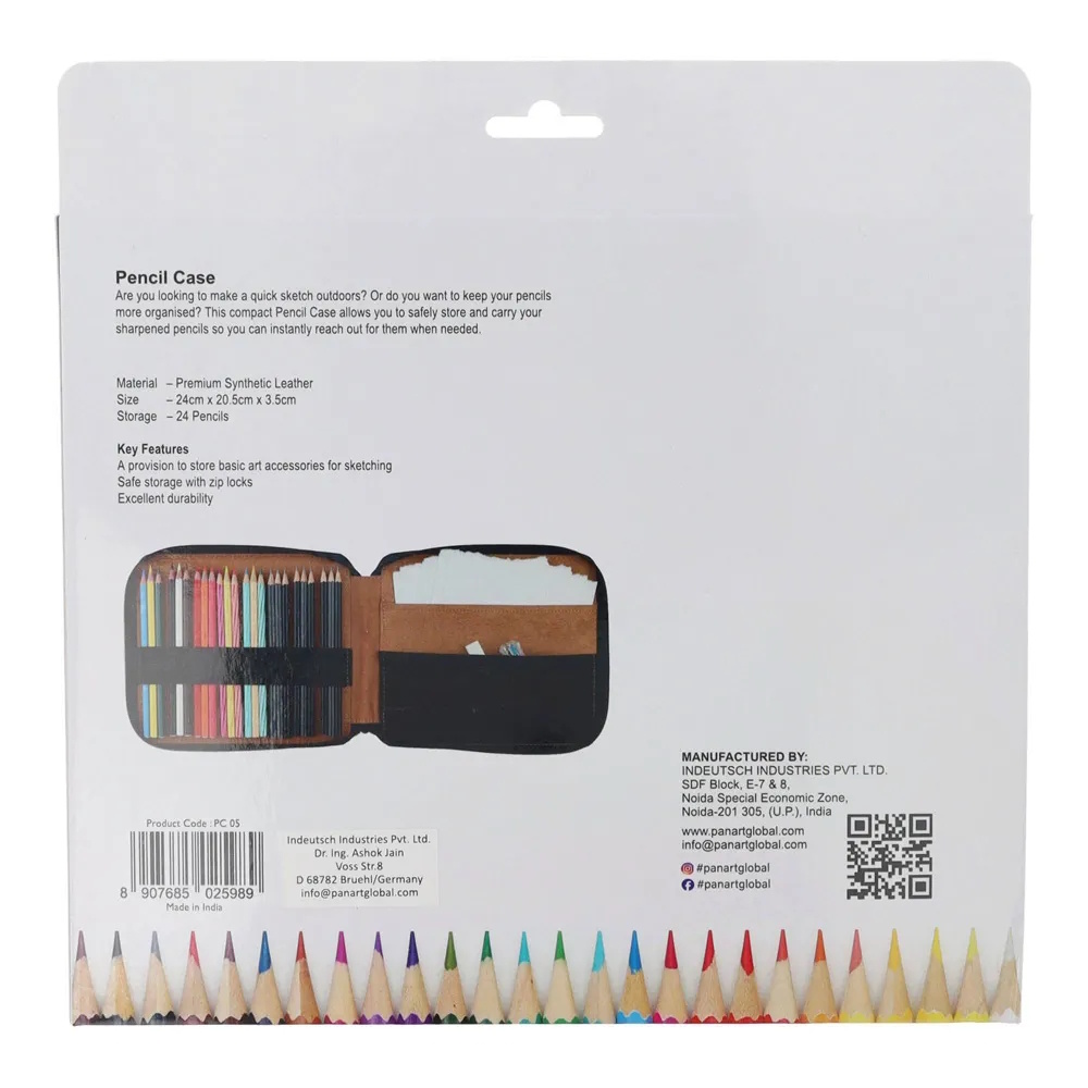 Stijlvolle potlodenetui van Pan Art is gemaakt van hoogwaardig kunstleer en biedt voldoende ruimte voor je potloden en schetspapier. Het etui is stevig, compact en perfect om mee te nemen onderweg. Aan de binnenzijde bevinden zich aan de linkerzijde 24 vakjes voor potloden of pennen, en aan de rechterzijde 2 vakken voor papier en kleinere benodigdheden zoals gummen en puntenslijpers.