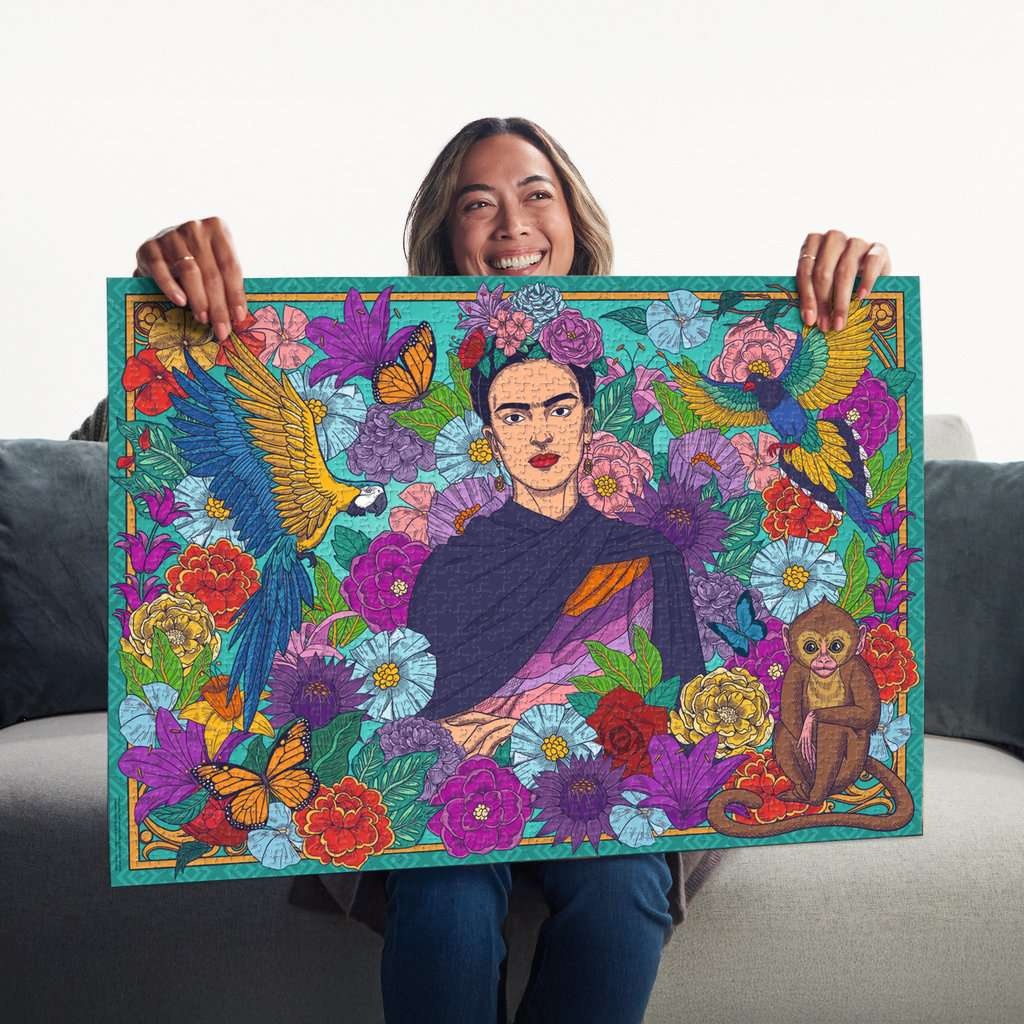 Legpuzzel met 1000 stukjes van Ravenburger met de beroemde kunstenaar Frida Kahlos.