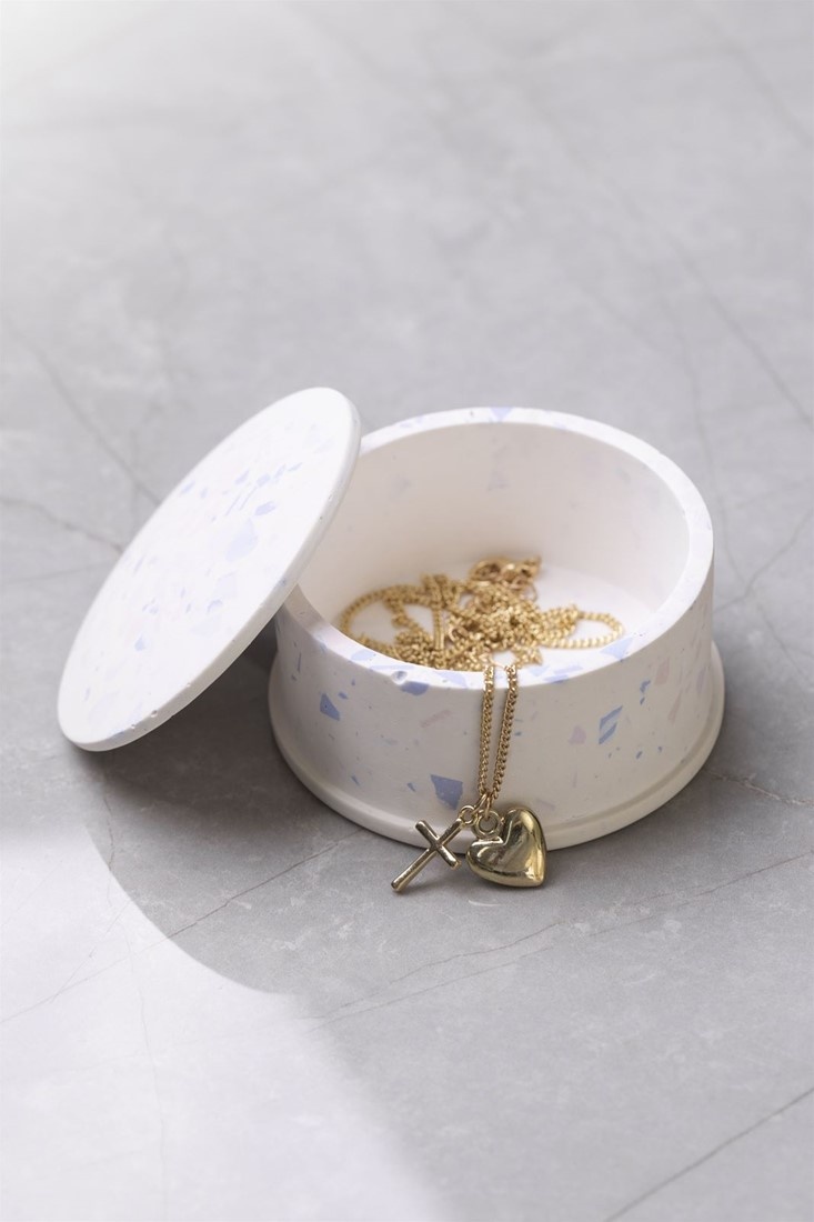 - Maak kleine terrazzo vlokken van gedroogde giethars en meng deze door het gietmateriaal