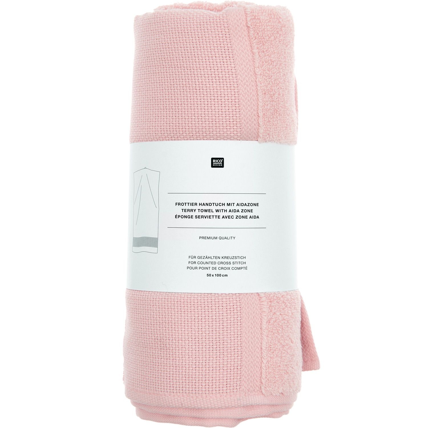 Rico Design Badstof Handdoek Roze 50 x 100 cm met aidaband