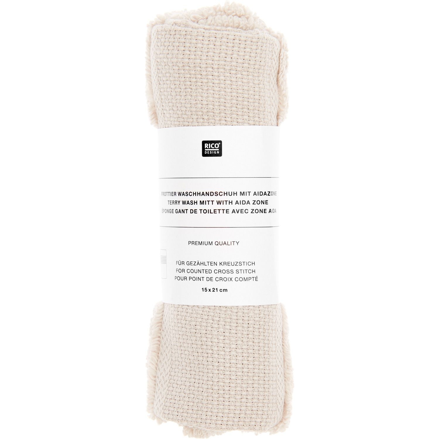 Rico Design Washand Licht beige 15 x 21 cm met aidaband