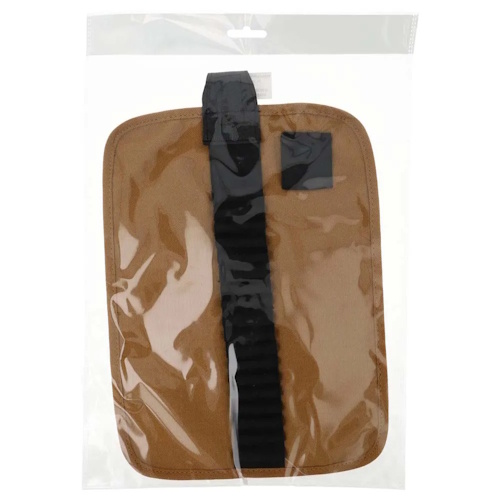 Het open etui meet 30,5 x 20,5cm en kan worden gesloten met een drukknoop.