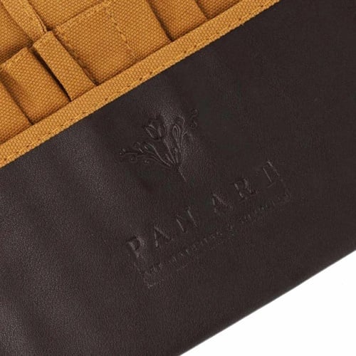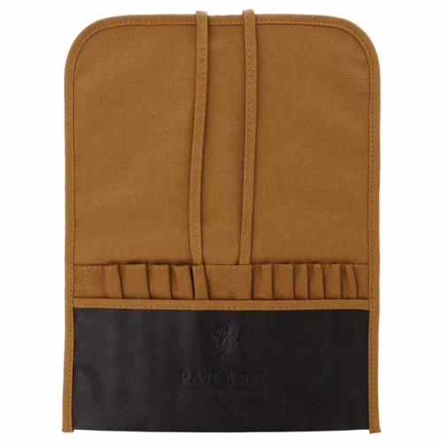 stijlvolle roletui van Pan Art is gemaakt van een combinatie van kunstleer aan de buitenkant en een binnenvoering van 100% katoen. Het etui biedt ruimte voor 12 penselen met een korte steel - perfect om mee te nemen onderweg of om thuis veilig je penselen in op te bergen.