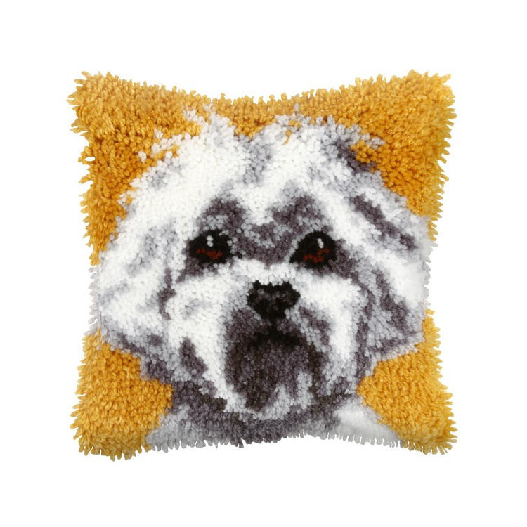Smyrna Knoopkussen Wit Hondje 25.5 x 25.5 cm