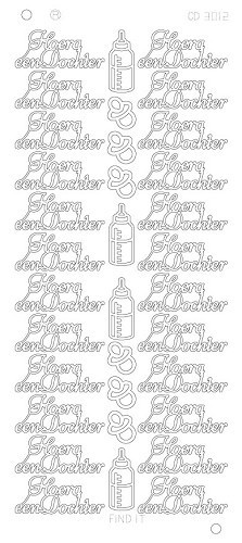 Stickervel met goudkleurige tekst: Hoera een Dochter