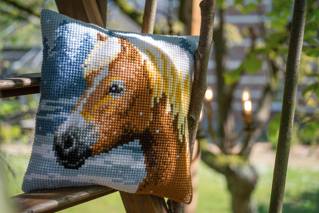 Makkelijk te borduren borduurkussen met een paardenhoofd