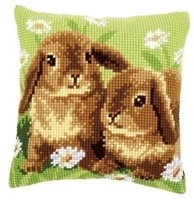 Vervaco borduurkussen van twee schattige konijnen 0162709. U borduurt dit sierkussen zelf met kruissteken