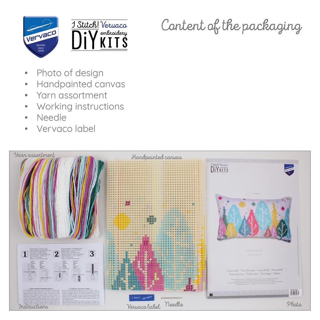 Vrolijk kussen borduurpakket met vrolijke kleuren