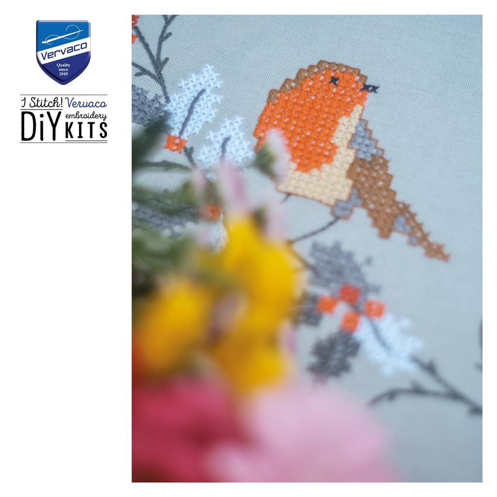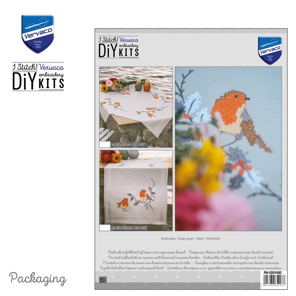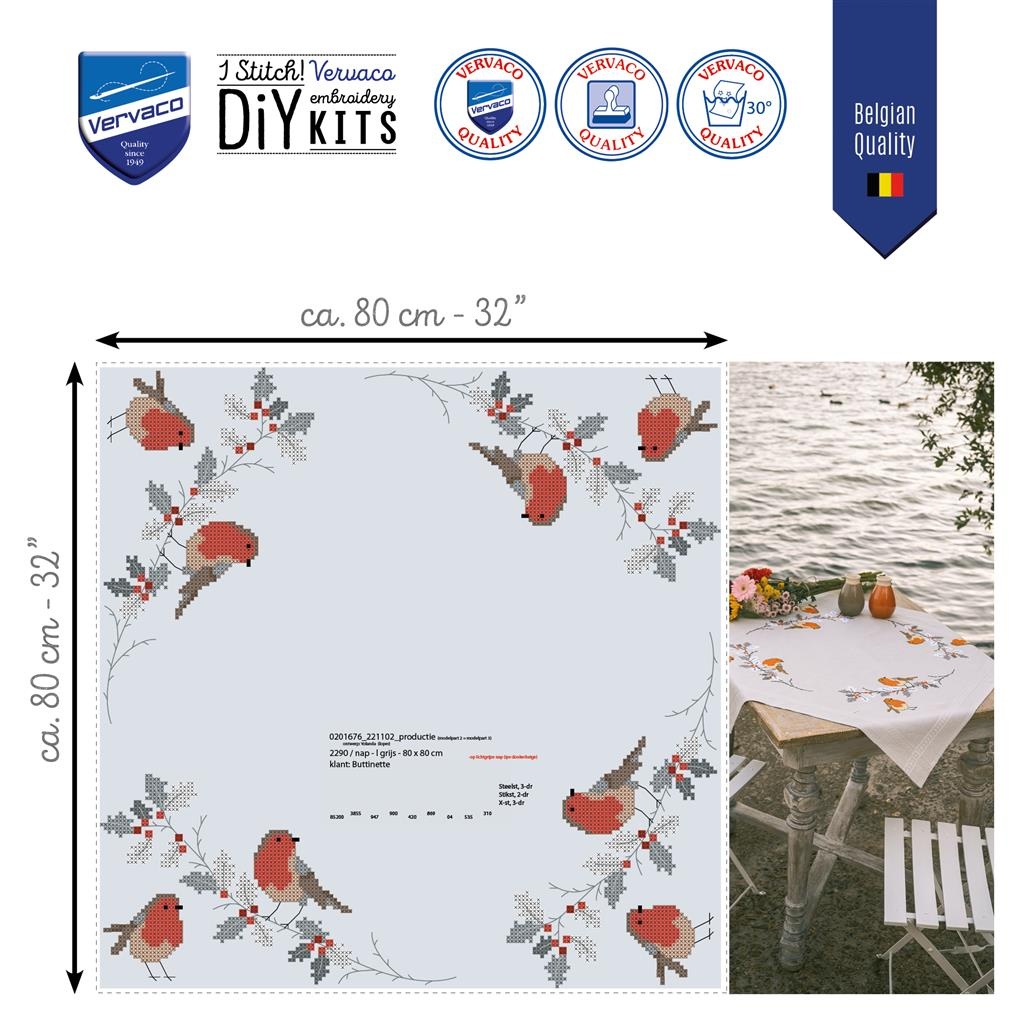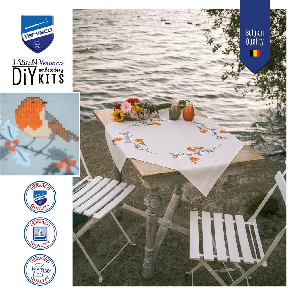 Vervaco Tafelkleed Roodborstjes 80 x 80 cm