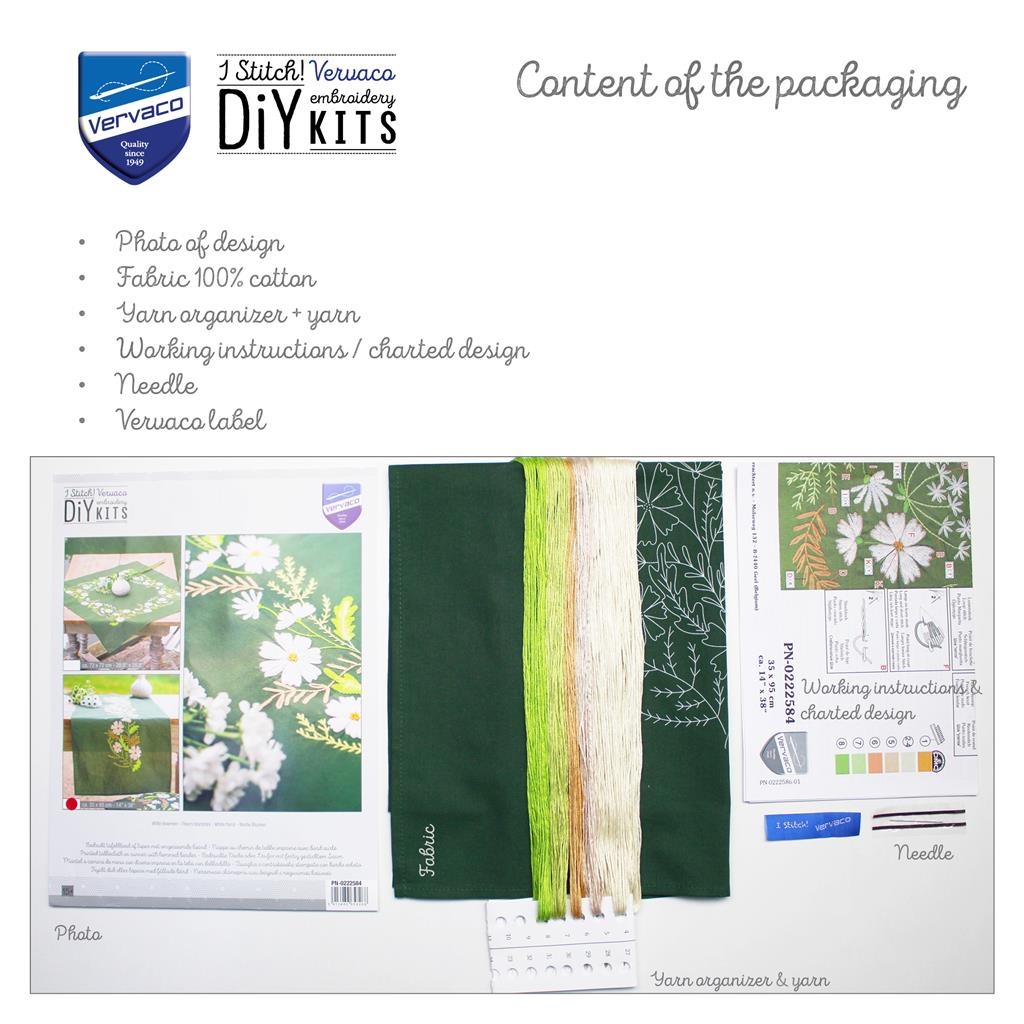 Vervaco tafelloper borduurpakket witte bloemen PN-0222584