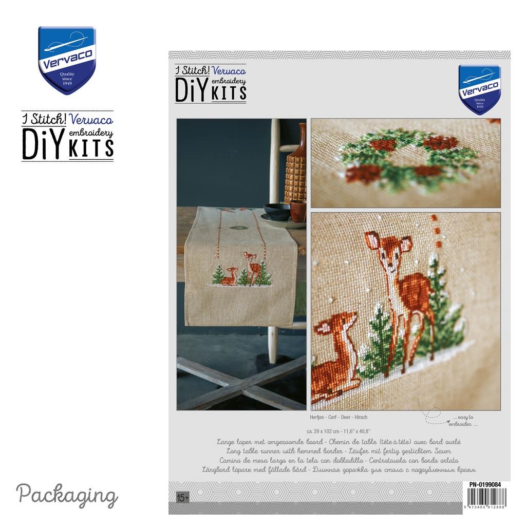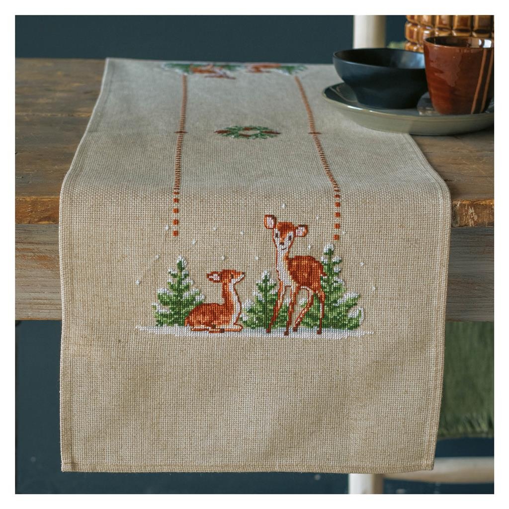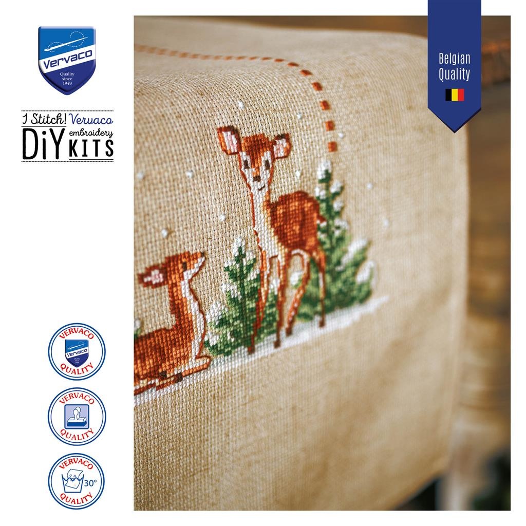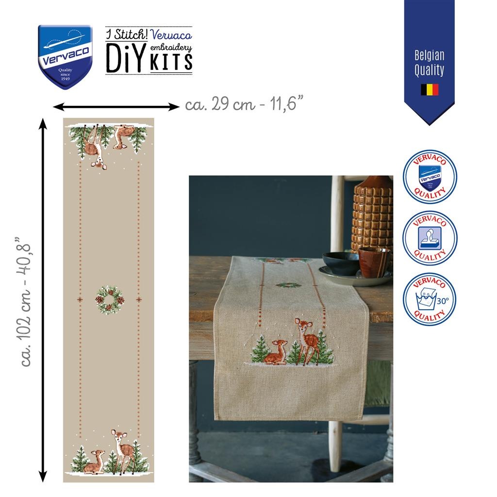 Borduurpakket met een langs smalle tafelloper met kerstmotieven